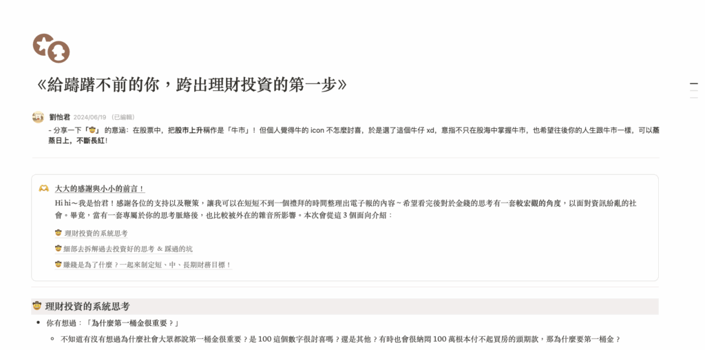 如果你對這個主題有興趣,或是對「如何用 Notion 寫電子書」、「內容如何編排感興趣」,