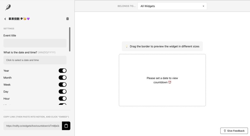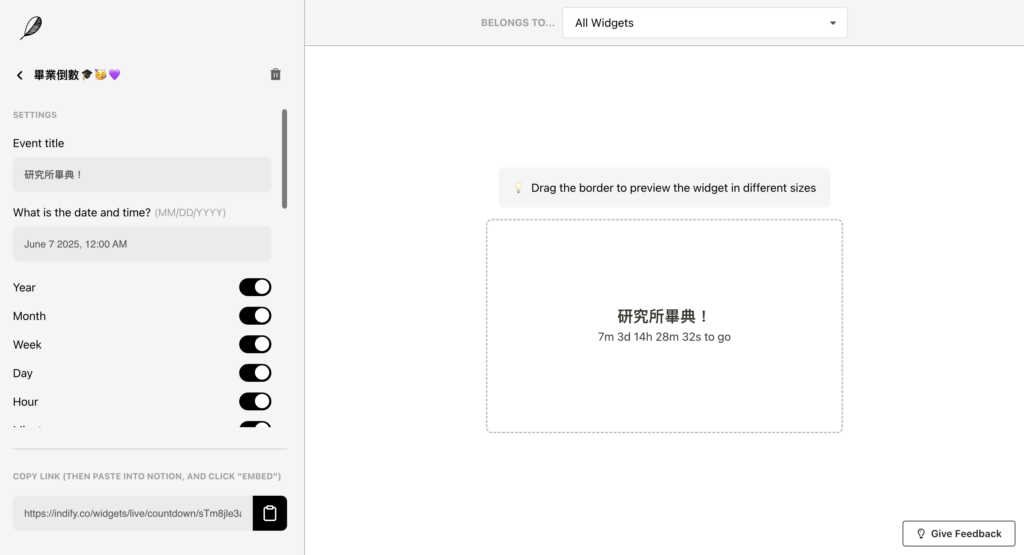 將小工具,內嵌至 Notion設定好後,就可以直接將下方的連結複製,準備貼到 Notion 的頁面中!