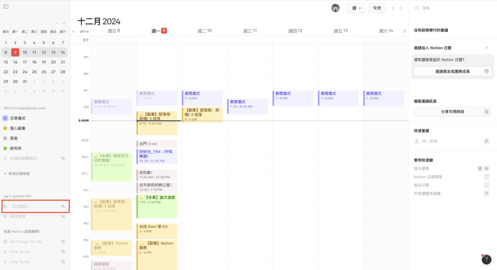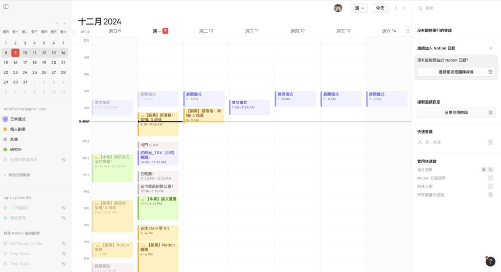 登入完成後,即可進入 Notion 日曆介面,Google 日曆的資料也會自動同步過來!