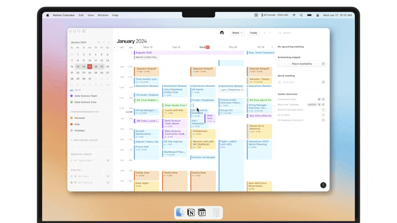 - Notion 與 Google 的強大協作功能,同樣延續到日曆管理中。你可以輕鬆分享時段安排,非常適合跨團隊合作的專案,或學生分組討論。