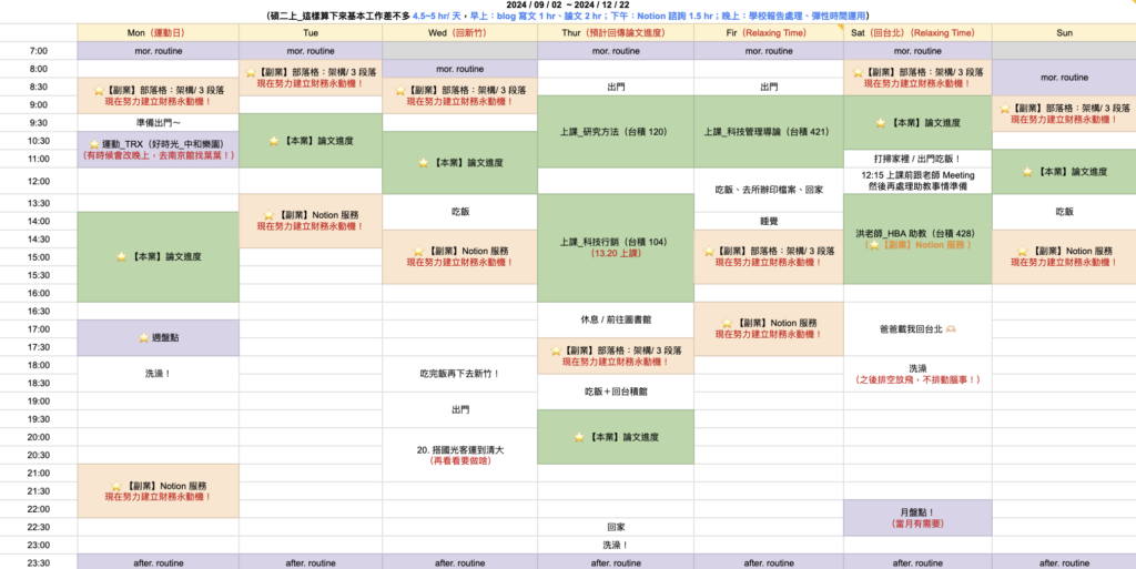透過這樣的固定規劃模式,不僅讓時間管理更穩定,也幫助自己持續保持高效與專注!