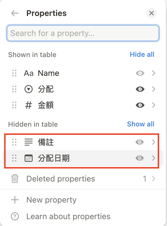 選擇 Property,把不需要用的屬性點擊旁邊的眼睛隱藏掉。