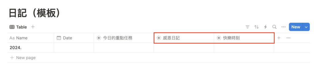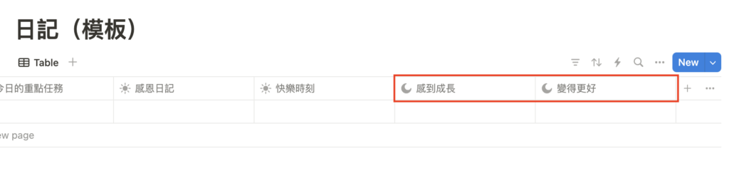 重複 2~5 的步驟,也將「感恩日記」、「快樂時刻」的欄位完成。