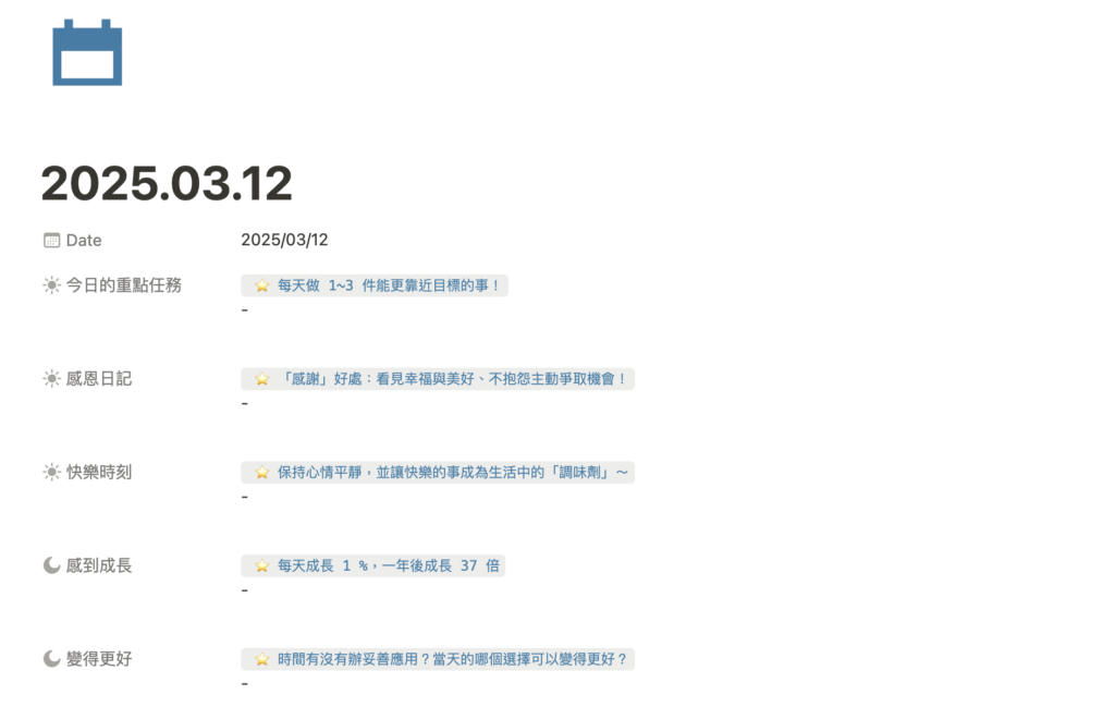 Notion 的靈活性與數位日記的高效特性,只要找到適合自己的節奏,就能輕鬆養成長期習慣。