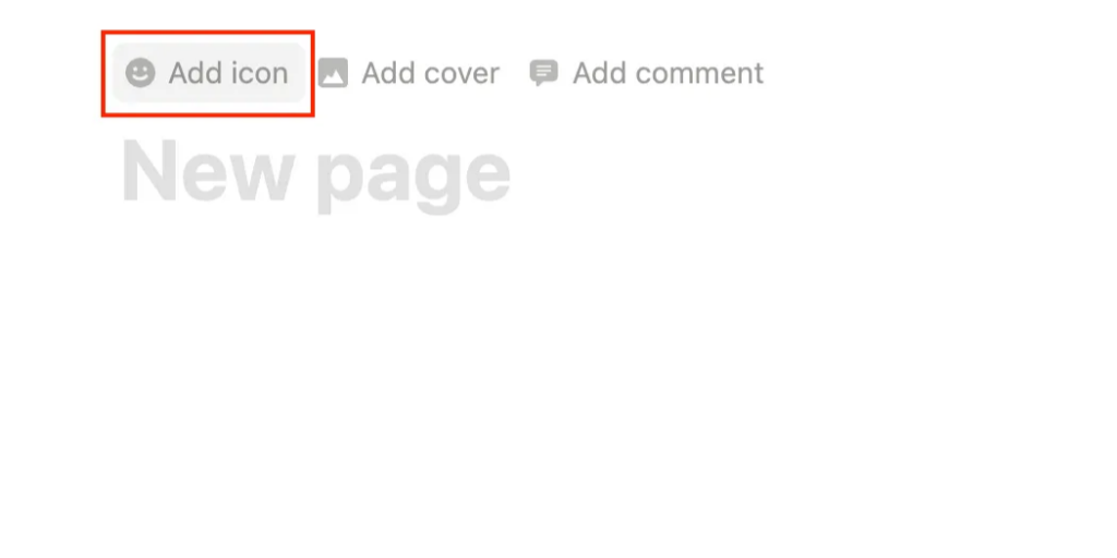 進入全新的空白頁面後,把滑鼠游標放至 New page 上面,就會看到「Add icon」的文字。
