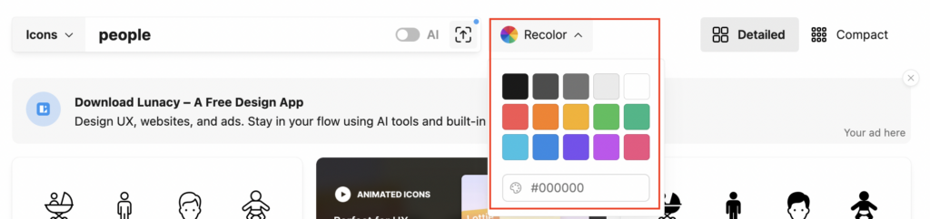 除了擁有豐富的圖庫外,Icon8 還能針對你想要的 icon 自行配色。