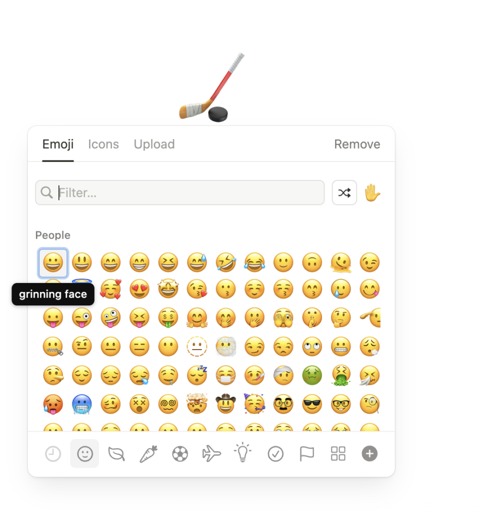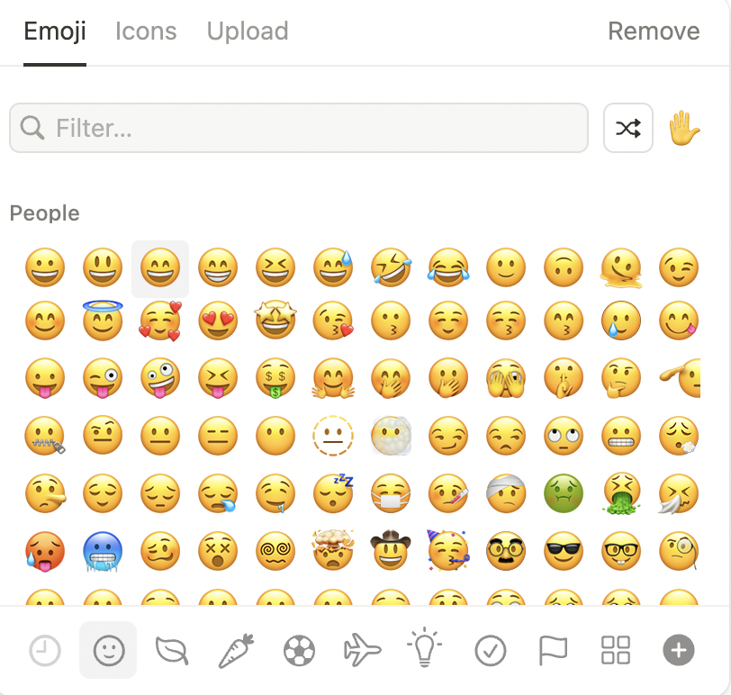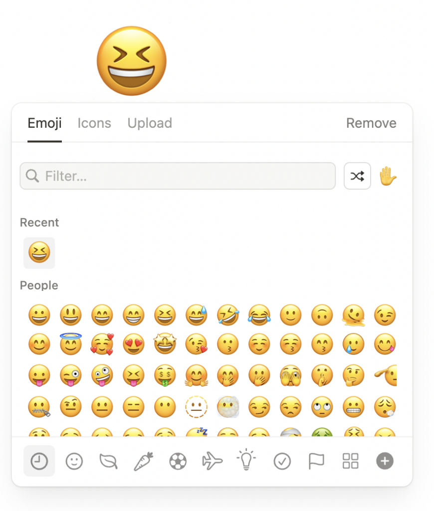 點下「Add icon」後,Notion 會自動跳出一個隨機的 icon!如果想要替換,可以在下方眾多的 icon 中選擇一個自己喜歡的符號!