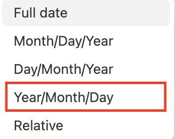 這邊有 5 種日期的形式提供參考,自己最常捨用的設定是「Year/Month/Day」。