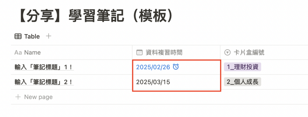 接下來我會以「筆記」模板為範例,跟你分享如何快速設定「提醒」通知,幫助你將 Notion 融入生活中的一部分。
