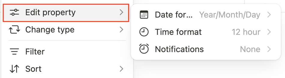 點「Edit property」(調整屬性),會看到日期、形式、通知的選項。