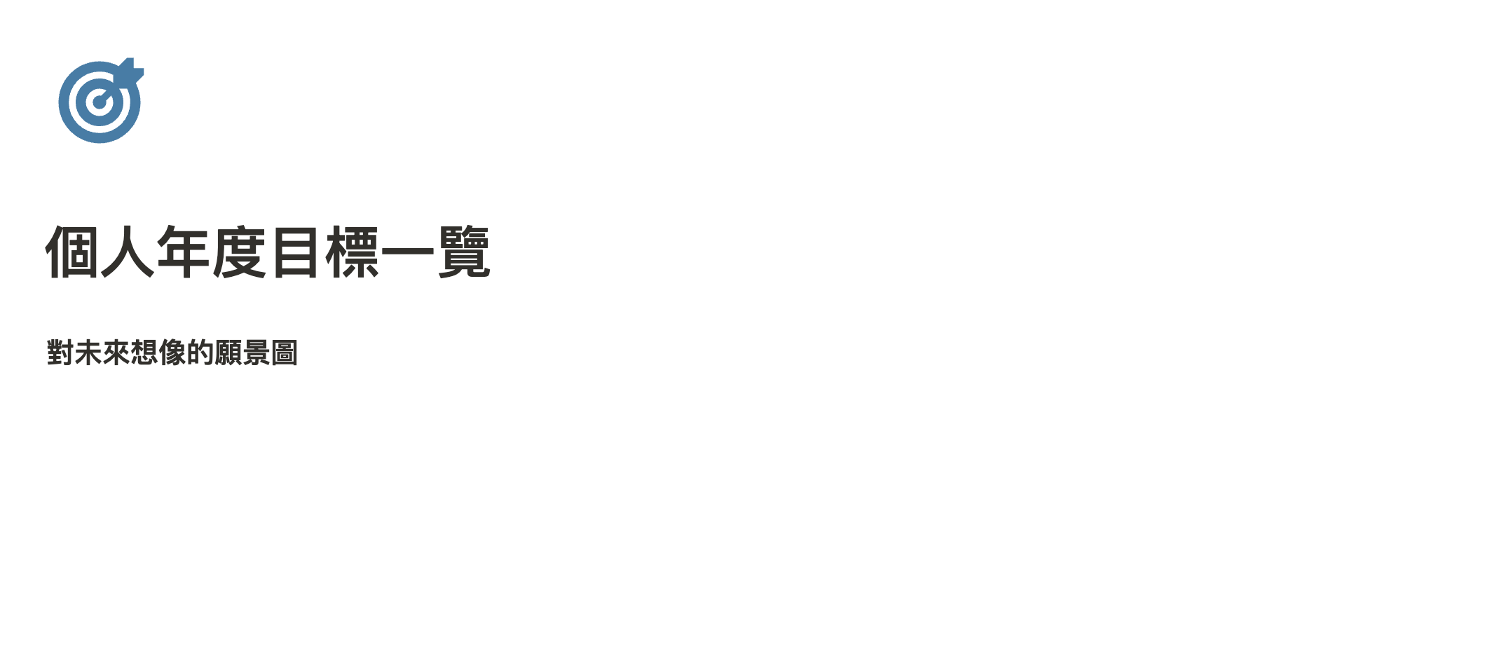 在最上面打上標題,像是「個人年度目標一覽」之類的,還有別忘記加上 icon 讓畫面更加活潑。