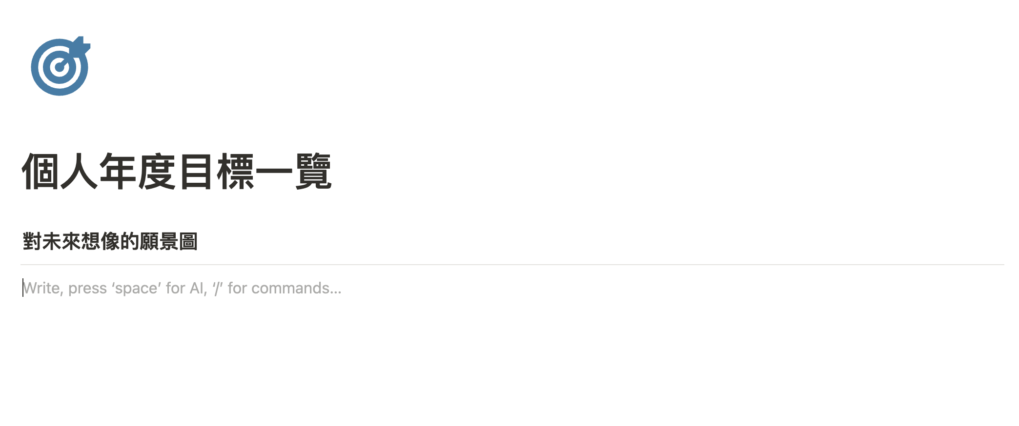 現在,我們就要在 Notion 新增讓你勾勒未來藍圖的區塊: