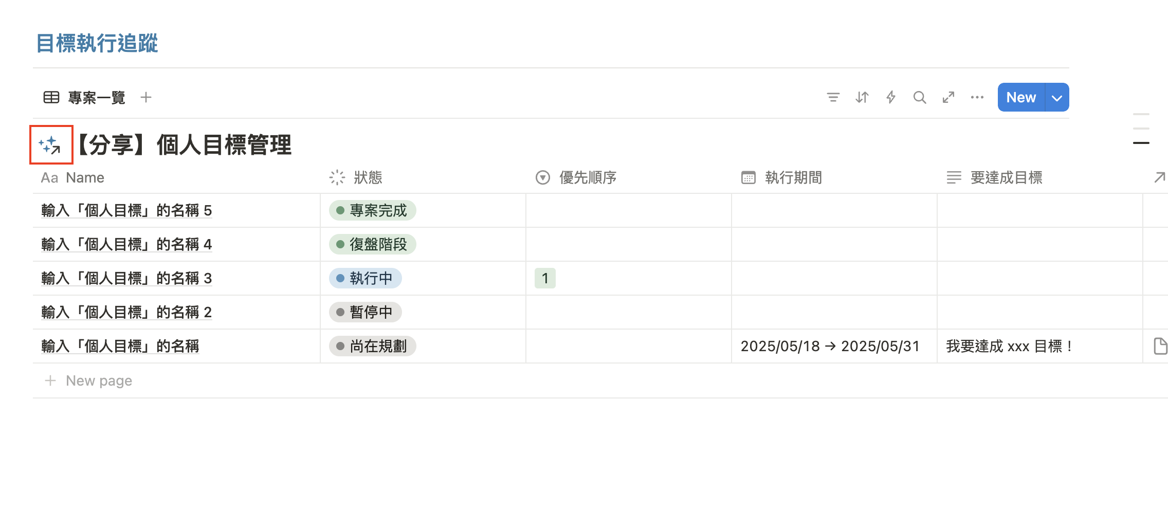 - 個人年度目標範例:用這 4 步,打造你的高實踐計畫(內含 Notion 模板)