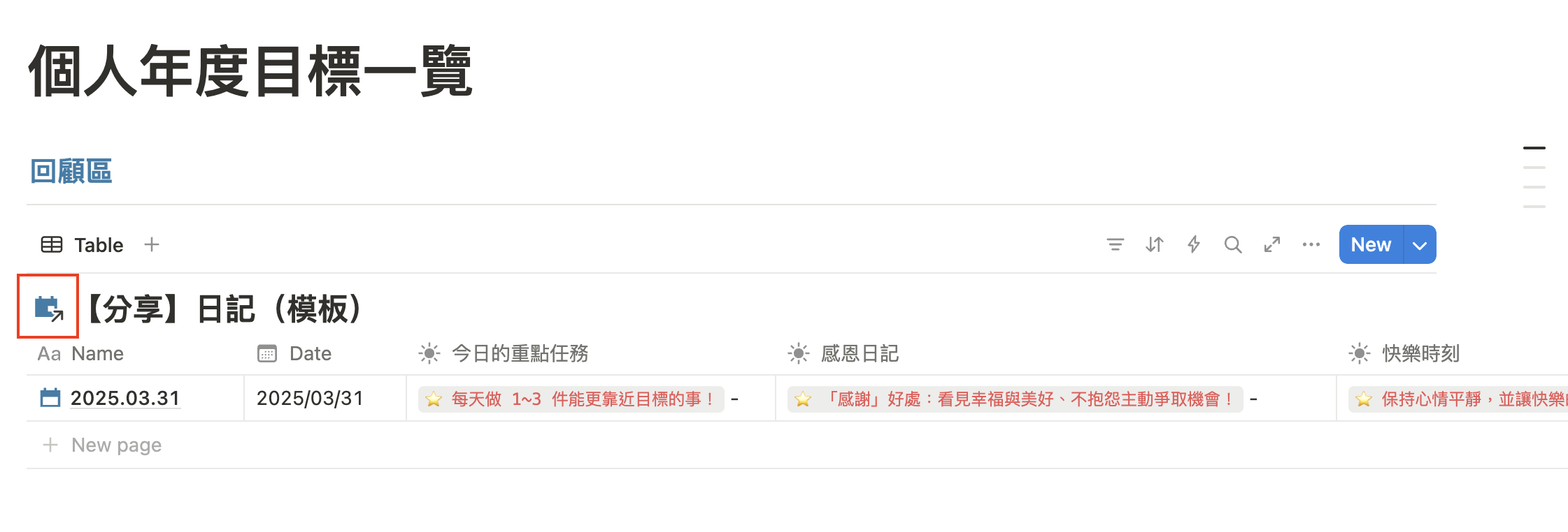 也非常推薦你將這些內容同步寫入「年度回顧」的頁面中。